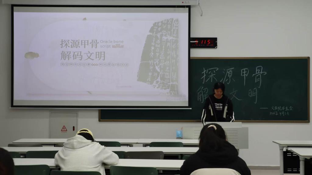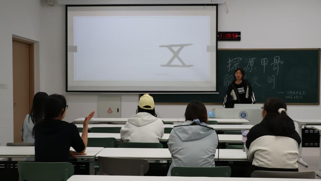 以甲骨溯文脉,以古字启慧心。为引导同学们探寻汉字之源、增强文化自信,4月17日,我院于教一楼110、111教室举办“探源甲骨,解码文明”甲骨文主题活动,活动面向文学院全体学生展开。