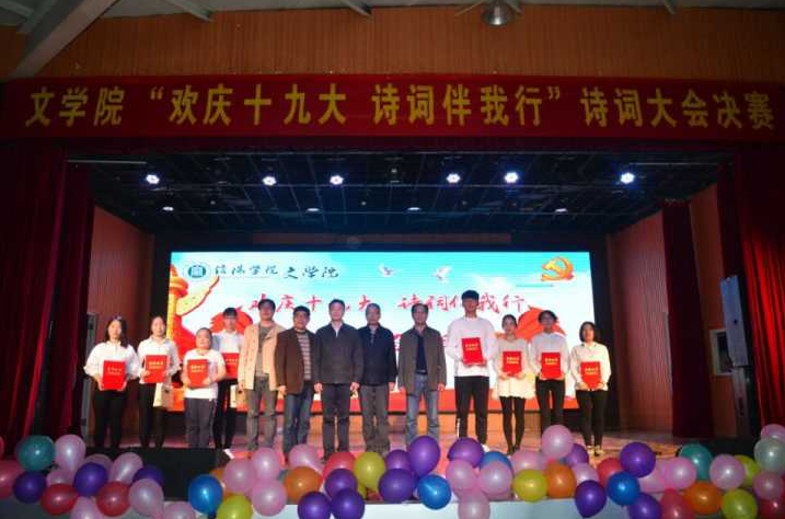 诗词凝聚了中华民族的伟大智慧和人文精髓,它也包含了中华民族的精神。为庆祝党的十九大的顺利召开,传承优秀的传统文化,营造文明和谐的校园文化氛围。信阳学院贤山国学社于9月21日开始举办了”欢庆十九大,诗词伴我行”诗词大会比赛,经过初赛、复赛的层层选拔,最终有8人进入决赛。决赛于10月19号晚上七点在信阳学院大学生活动中心举行。决赛分为三轮,最终决出一等奖一名,二等奖二名,三等奖三名,优秀奖两名。