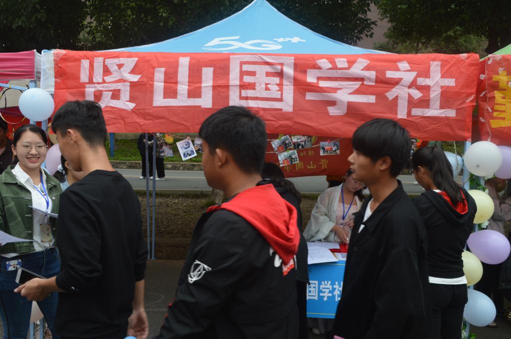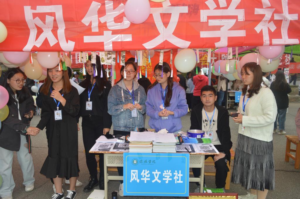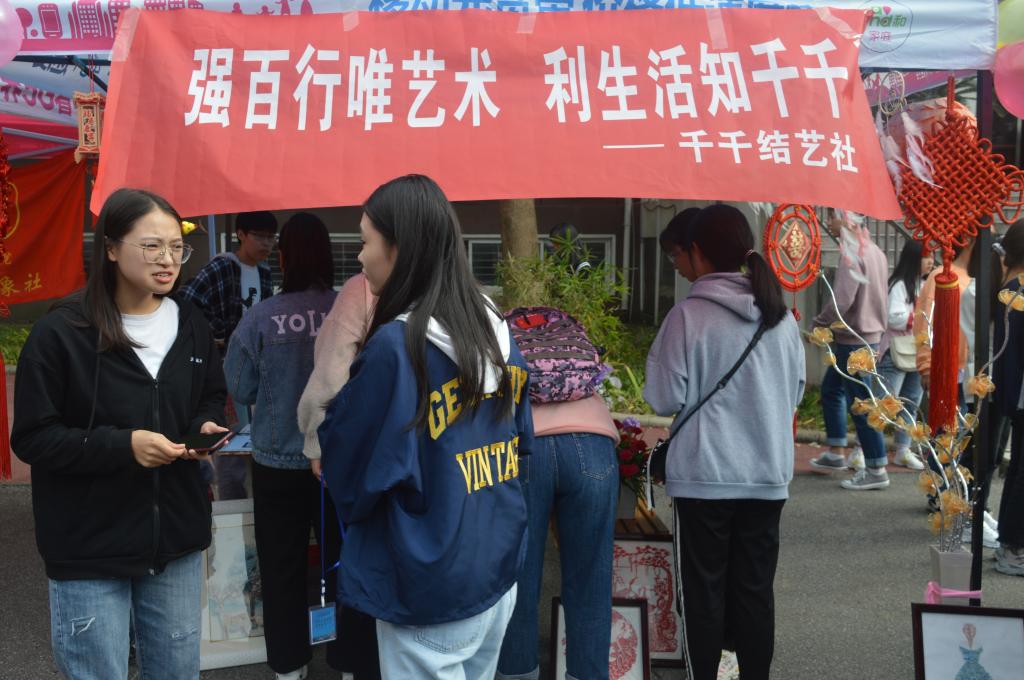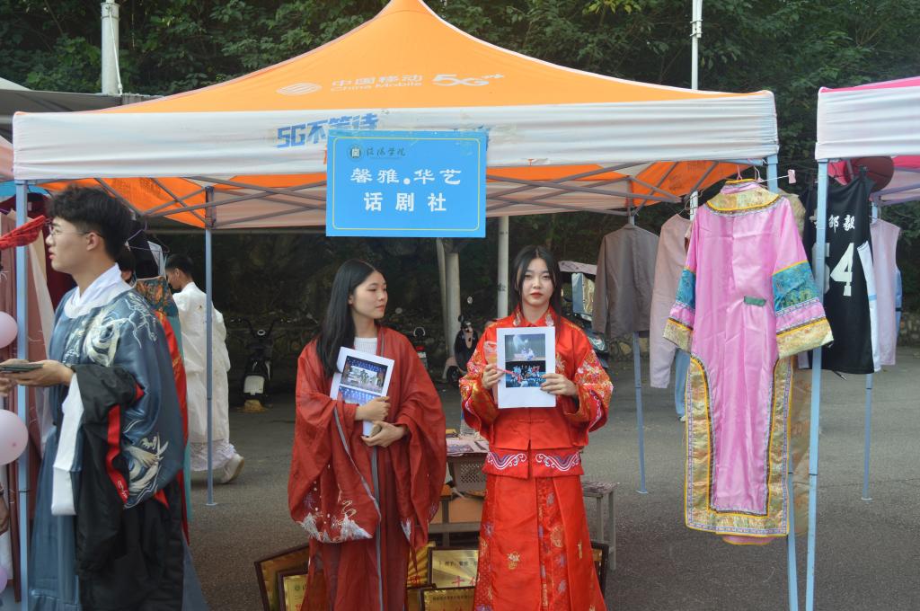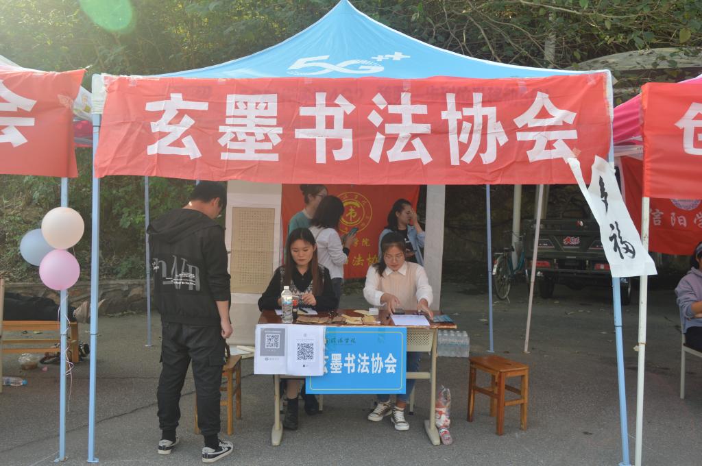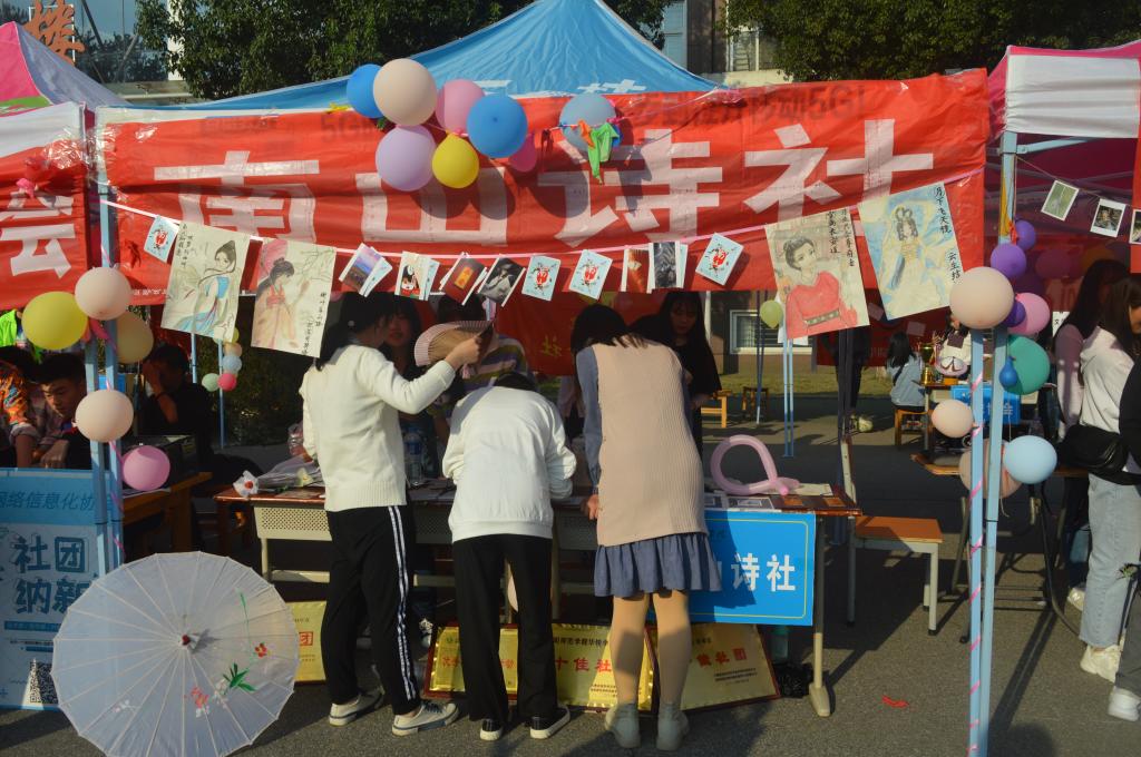 其中,我院南山诗社向同学们展示了个人创作的国风绘画以及社团集体荣誉证书;视觉人类学社将本社的多台相机整齐摆放于桌面,吸引了一大批同学的目光;千千结艺社向同学们展示手工做的丝网花和小风车,其中最让人惊艳的是一件用纽扣做的少女裙子,引得同学们前来围观;玄墨书法社则向同学们展示书法作品,更有学长为学弟学妹们亲笔书写寄语,一笔一画间灌注了对学弟学妹的殷切期望。馨雅华艺话剧社,新锐映像社,贤山国学社,风华文学社等也纷纷拿出各自社团的道具招揽社员。