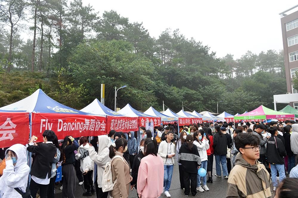 上午8时,各社团的招新摊位和宣传展品早已准备就绪,彩虹门高高耸立,招新标语、宣传展板鲜亮醒目。各社团“各显神通”,纷纷拿出了自己的看家本领,吸引了诸多2021级新生驻足了解。富有创意的宣传标语、独具特色的才艺表演、各种活动道具,现场热闹非凡,无不呈现出我校学生社团昂扬向上的精神风貌和精彩纷呈的文化活动。