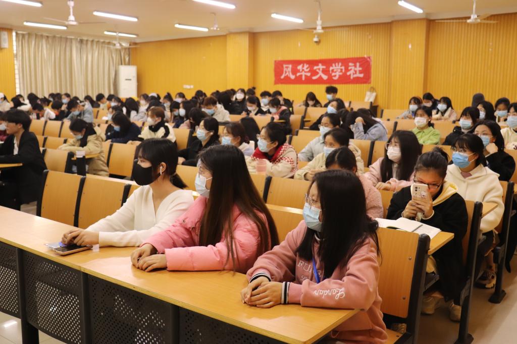 3月24日下午4点30分,我院的风华文学社在人文楼108教室举办文学讲座。此次讲座主题为人生最高的艺术境界——谈读书,由厉向君教授主讲,文学院一百余名学生参加了此次讲座。