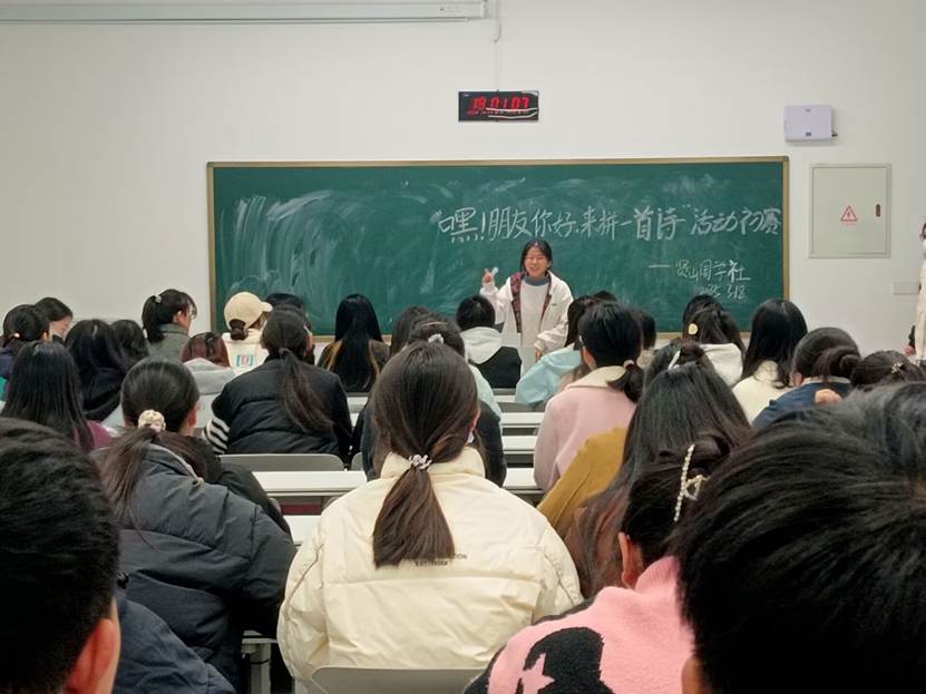 为传承诗歌艺术魅力与文化价值,培养学生文学创作能力和审美水平,3月27日晚,我院于南湖校区教一楼308教室举办了“嘿!朋友你好,来拼一首好诗”诗歌拼贴互动活动。活动过程中评委团为选手提供专业点评和计分。此次活动由贤山国学社主办,李彩虹主持。