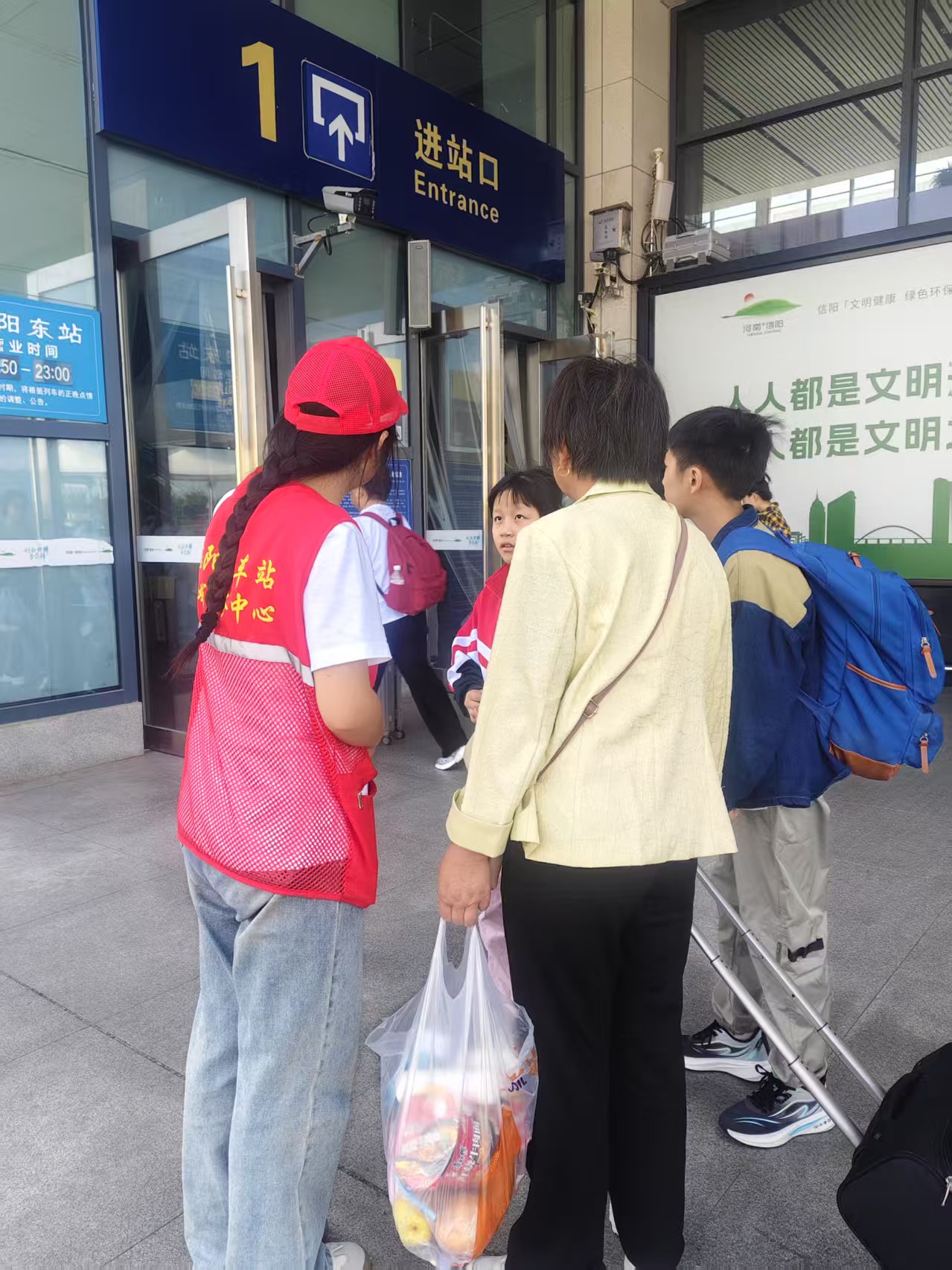 为进一步弘扬志愿服务精神,协助信阳高铁东站工作人员为乘客们提供暖心服务,信阳学院文学院志愿服务队于“五一”劳动节期间在信阳高铁东站开展了志愿服务活动。