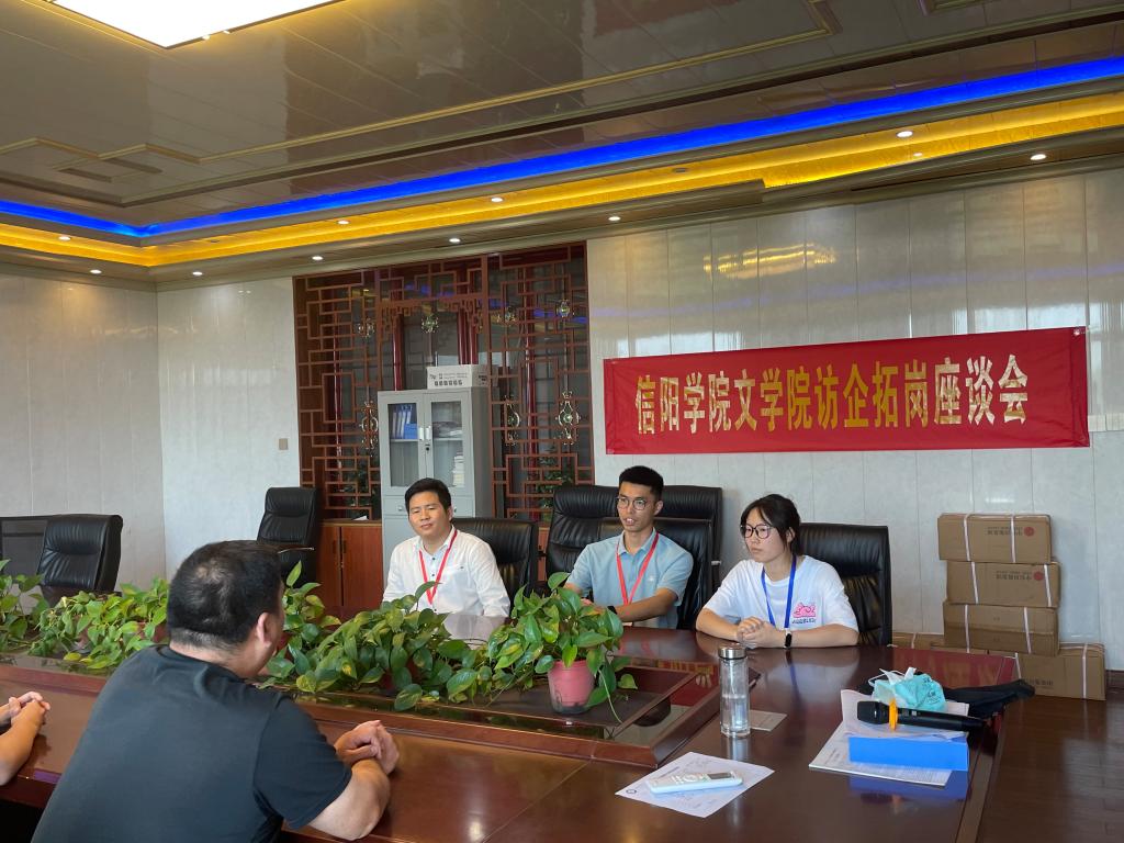 在实地考场当中,文学院实地考察了驻马店新蔡县育英中学,驻马店市新蔡县砖店镇政府,驻马店第二实验小学,周口市沈丘县志远中学,周口市人保财险公司等单位。在访企拓岗的座谈会上,文学院领导班子介绍了学校总体发展、文学院专业发展、人才培养情况以及毕业生就业工作。文学院负责人指出,信阳学院始终坚持立德树人根本任务,坚持就业育人目标,优化专业布局,创新育人模式,人才培养质量得到用人单位的高度认可。学校也将积极促进人才培养与企业用人需求精准对接,实现毕业生更加充分、更高质量就业创业,更好地服务地方经济社会高质量发展。
