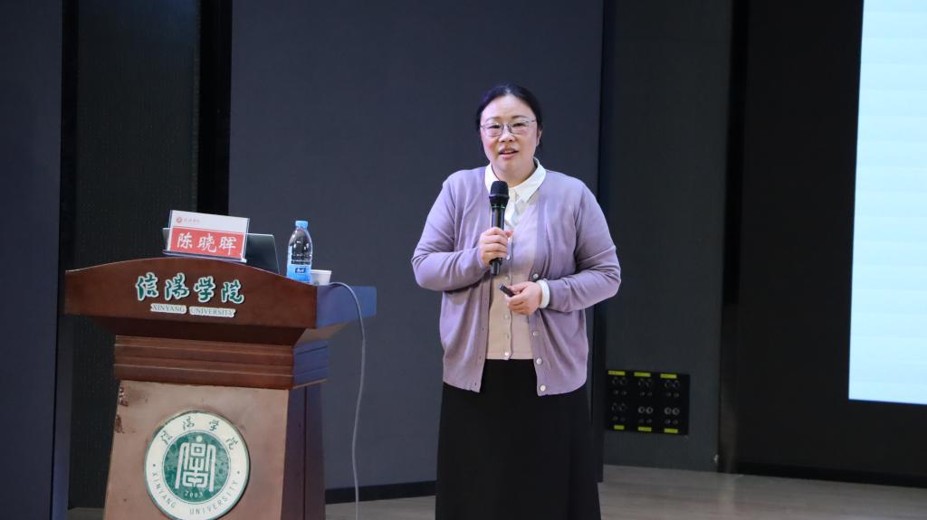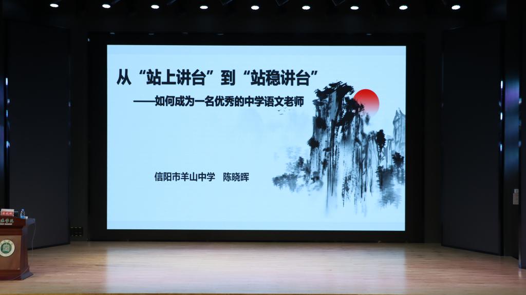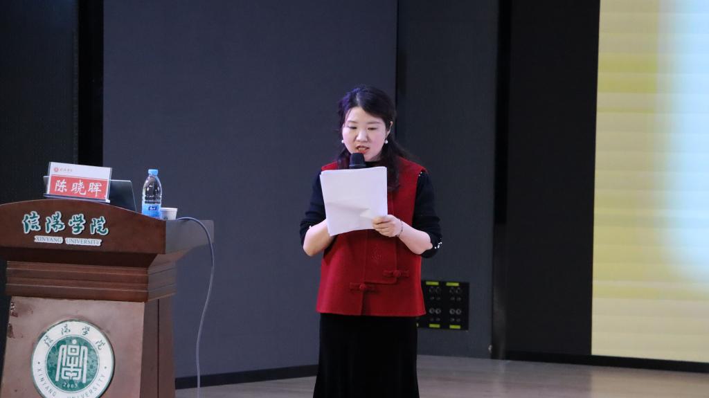 针对新课标对语文教学的新要求,她重点围绕“朗读”与“阅读”两大核心能力进行深入阐释。她指出,当前中学语文新课标高度重视朗读教学,她通过播放优秀朗读示范视频,强调教师的声音素养是语文课堂的核心魅力,要求同学们必须提升朗读能力、深度熟悉教材,用声音传递语文之美;针对就业核心要求,她进一步分析,语文新课标持续修订、教材内容不断更新,唯有持续增加阅读量、深化教材解读能力,才能跟上教育改革的步伐,成长为符合时代要求的优秀教师。此外,她还鼓励同学们紧跟时代发展,学会灵活运用AI技术辅助教学,以科技赋能课堂创新。讲座最后,陈晓晖校长对信阳学院的邀请表示感谢,并诚挚欢迎学院学子前往羊山中学开展实践实习,为基础教育事业贡献力量。