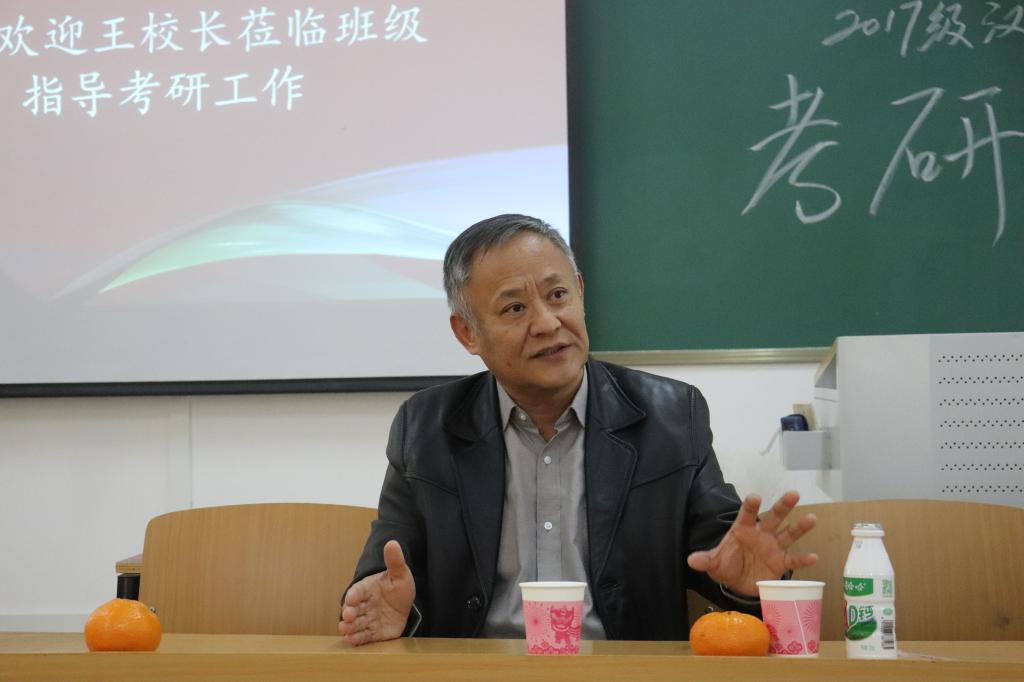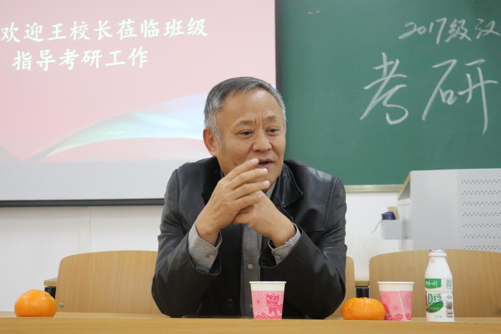 为使考研同学进一步了解了考研的基本动态、考研的形势以及考研信息,明确自己考研的决心与目标,掌握考研的复习方法。11月19日下午三点,2017级汉语言文学本科12班于人文楼419教室举办考研动员大会,信阳学院副校长王强莅临班级指导考研工作。本次大会由学工秘书徐远东主持。
