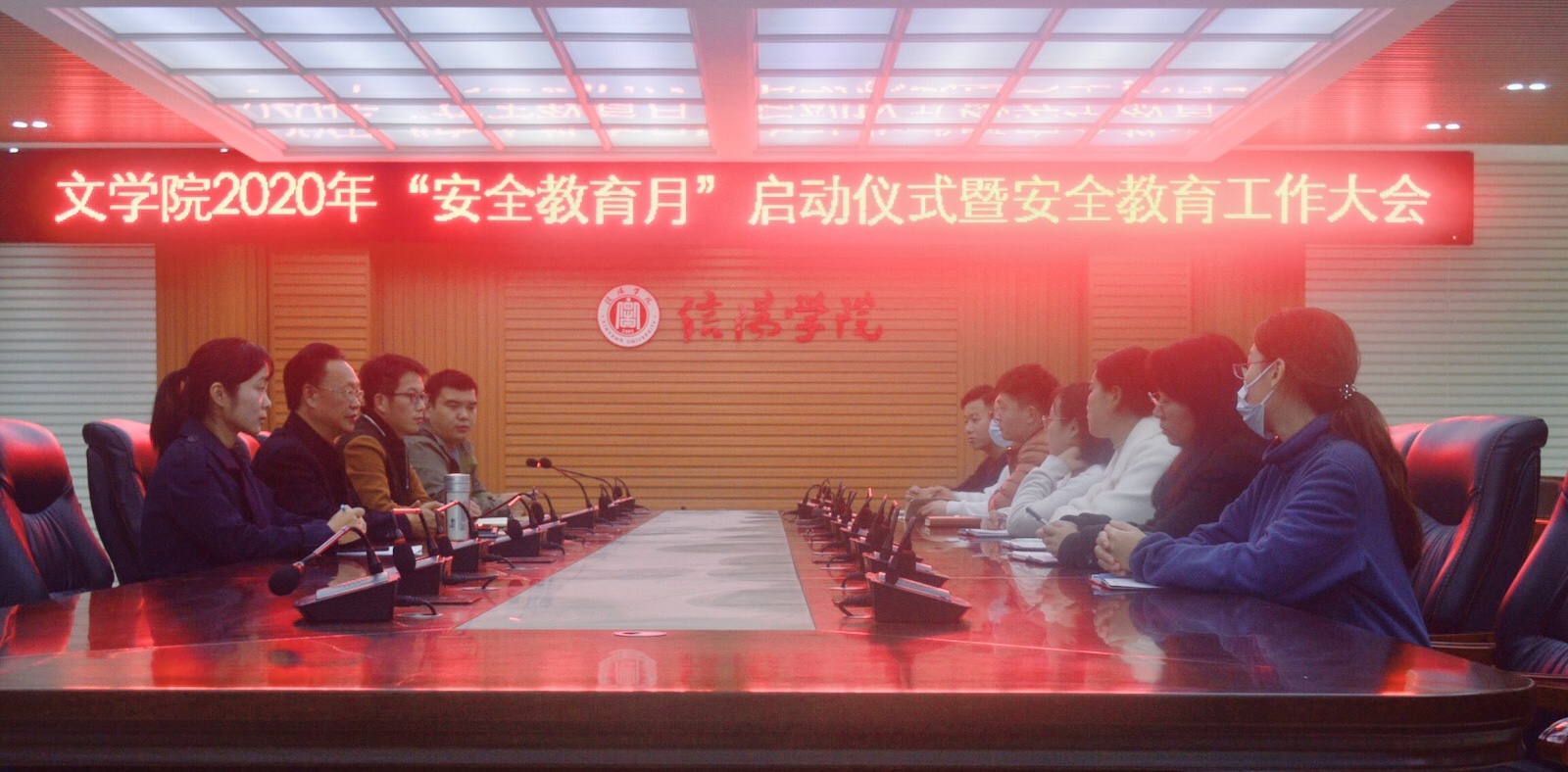 为深入贯彻落实党的十九大和十九届五中全会以及全国全省教育大会精神,巩固平安校园建设成果,营造和谐文明的育人环境,引导广大学生培育和践行社会主义核心价值观,培养学生的创新精神和实践能力,日前,文学院根据学校要求,结合实际,在人文楼208会议室召开了“安全教育月”活动启动仪式暨安全教育工作大会,文学院院长毛正天教授、党总支书记李赟、教学副院长黄亚妮、学工秘书徐远东出席会议,文学院全体辅导员和部分学生代表参加会议。会议由学工秘书徐远东主持。