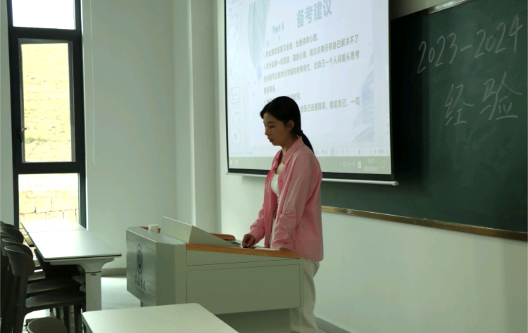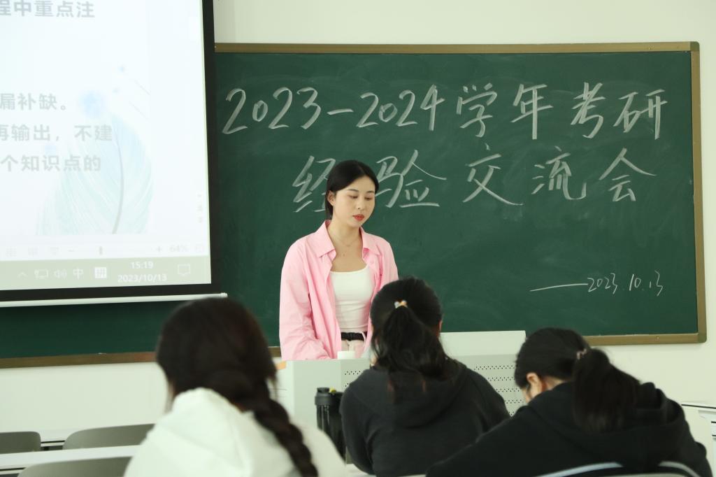 为调整文学院学子考研心态,为学子们分享考研经验,10月15日下午三点,我院在人文楼107教室举办2023--2024学年考研经验交流会,本次交流会邀请2023年文学院上岸学子孟亚婧分享考研心得,文学院部分考研学子参加了交流会。此次交流会由学工秘书徐远东主持。